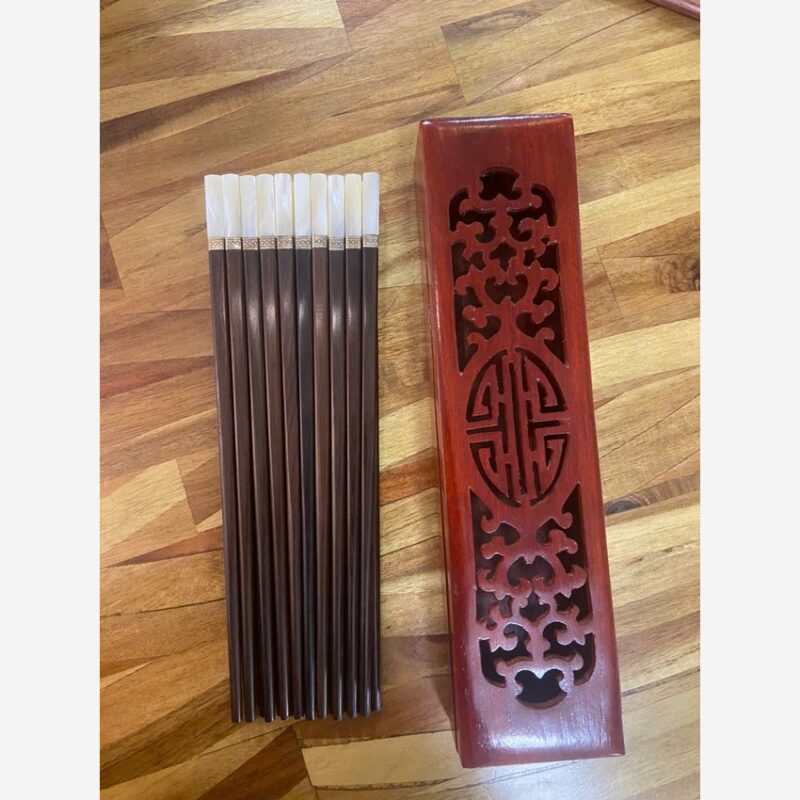 Đũa gỗ trắc đỏ cẩn ốc đai bạc – an toàn, sang trọng và bền chắc hơn đũa inox, nhựa. Lựa chọn hoàn hảo cho gia đình hiện đại.