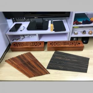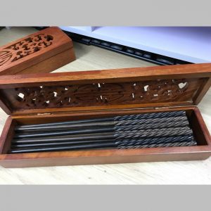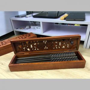 Chất liệu: đũa làm từ gỗ mun hoa, hộp bằng gỗ hương Nam Phi