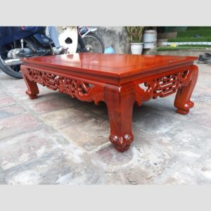 Bàn trà Nhật, bàn osin gỗ gụ chạm Ngũ phúc kích thước 120 cm