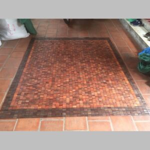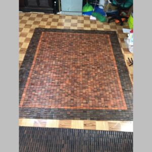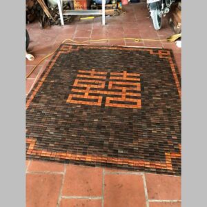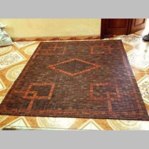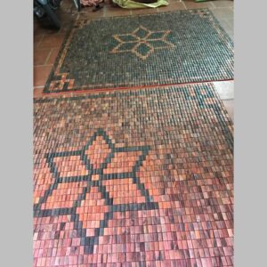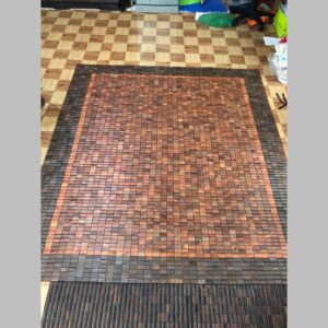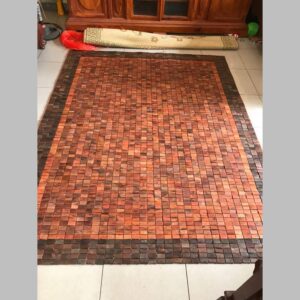 - Màu sắc và vân gỗ độc đáo: Chiếu được làm từ các mảnh gỗ trắc nhỏ, tạo nên một tổng thể màu sắc đa dạng và ấn tượng. Phần trung tâm của chiếu có màu vân gỗ đỏ cam ấm áp, rực rỡ, còn phần viền được làm từ các mảnh gỗ trắc có màu nâu sẫm, tạo sự tương phản và làm nổi bật họa tiết. Đây chính là nét đặc trưng của gỗ trắc và là minh chứng cho vẻ đẹp tự nhiên của sản phẩm.