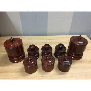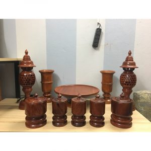 Bộ Đài thờ gỗ gụ gồm có 5 cái dùng để đựng gạo, muối, nước. Bộ ngai chén thờ to thường dùng một ngai 5 chén dùng để đựng rượu, gạo, muối, nước.