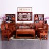 - Chất liệu gỗ hương ta đỏ được trạm trổ tinh xảo, tỉ mỉ đến từng chi tiết.
