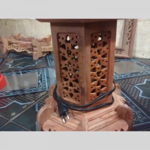 Đôi đèn bằng gỗ hương ta đỏ được chạm máy những hoa văn, hình khối vô cùng sắc nét và tinh xảo.