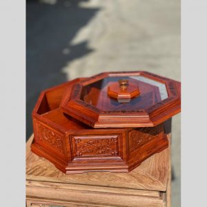 – Thiết kế hình bát giác chạm khắc các họa tiết hoa văn đẹp giúp cho bàn trà thêm điểm nhấn ngày tết.