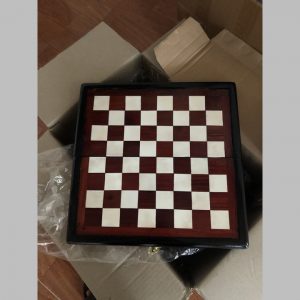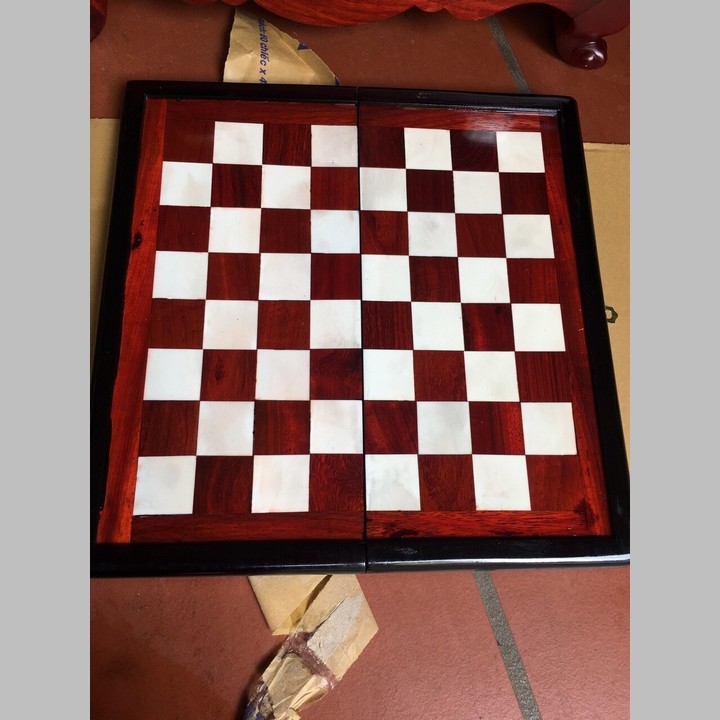 Bàn cờ vua bằng gỗ hương chống thấm nước, nhẹ và được ghép lại và kẻ đường chỉ trắng bóng, bền và đẹp.