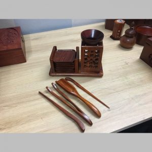Bộ dụng cụ pha trà – bộ gắp trà có đĩa kèm tiện lợi, đa năng bằng gỗ hương