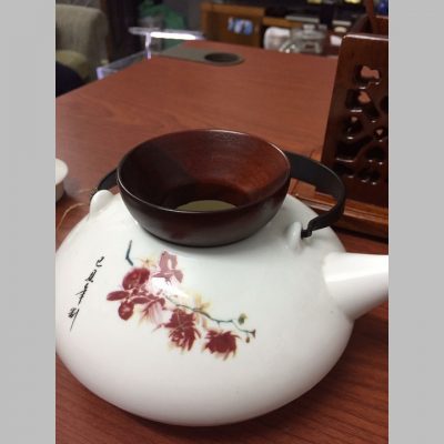 Chiếc phễu đặt lên miệng chiếc ấm giúp bạn dễ dàng đưa trà vào trong ấm mà không sợ trà bị rơi ra ngoài.