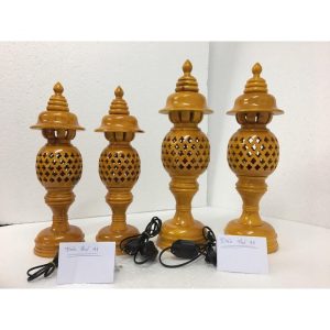 Đôi Đèn thờ cúng được tiện theo phương pháp truyền thống bằng gỗ xà cừvới họa tiết hoa thị 4 cánh cực đẹp, kích thước cao 48cm, bên trong có bóng quả điện tròn màu đỏ dùng để thắp sáng.