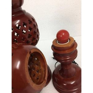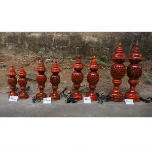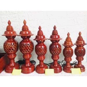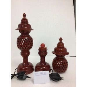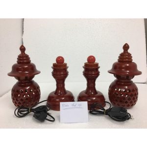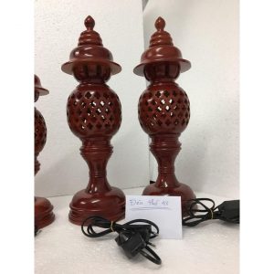 Đôi Đèn thờ cúng được tiện theo phương pháp truyền thống bằng gỗ xà cừvới họa tiết hoa thị 4 cánh cực đẹp, kích thước cao 48cm, bên trong có bóng quả điện tròn màu đỏ dùng để thắp sáng.