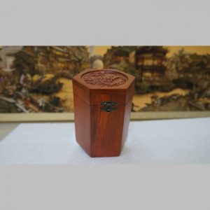 Quý khách có thể mua trà, mua chè xanh, chè Thái Nguyên đựng trong hộp gỗ lục giác chạm hoa làm món quà biếu đầy ý nghĩa, tao nhã và sang trọng, đẳng cấp. Sản phẩm được chế tác tinh xảo, vân gỗ tự nhiên, có móc khóa ngoài giữ cho nắp kín.