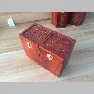Hộp chè vuông gỗ hương chạm dơi nhị phúc – phúc lộc song toàn