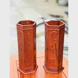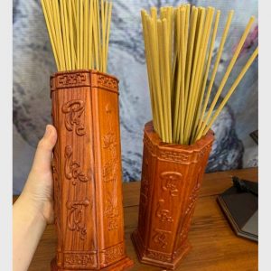 Ống cắm nhang bằng gỗ hương có họa tiết hoa văn tinh xảo được chạm máy sắc nét với hình hoa sen, chữ Phúc Lộc Thọ may mắn sẽ mang lại vẻ đẹp hình thức, trang nghiêm cho không gian thờ cúng.