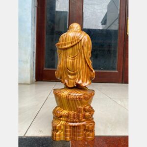 - Chạm khắc tinh xảo: Từng chi tiết khuôn mặt, chuỗi hạt, trang phục và dáng đứng được nghệ nhân thủ công chế tác tỉ mỉ, toát lên vẻ từ bi và phúc hậu.